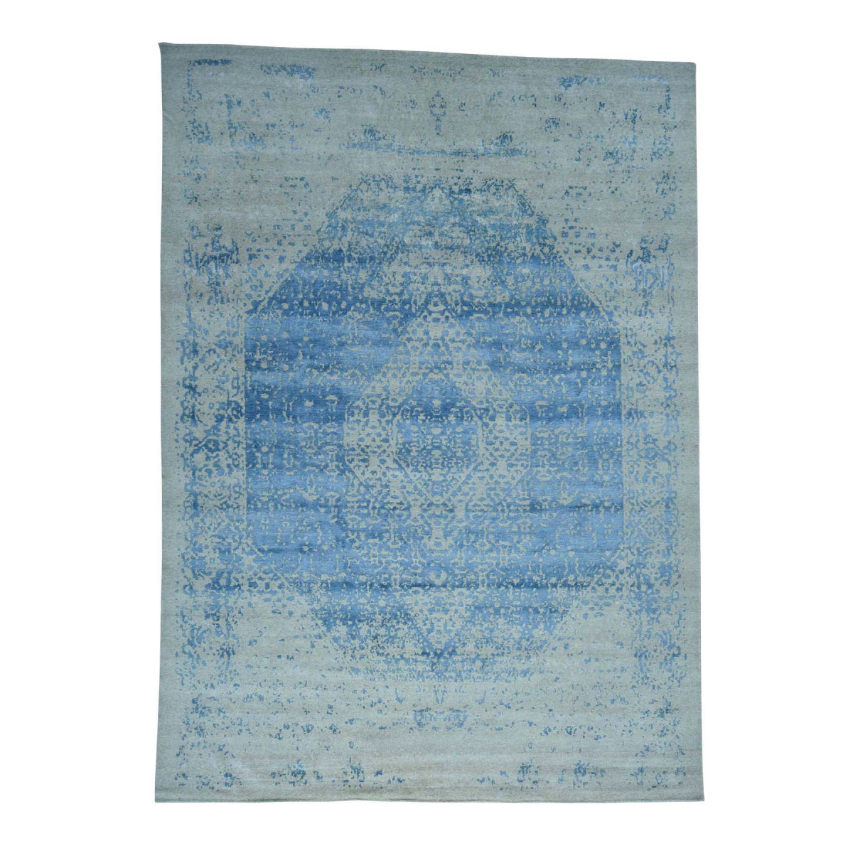 1800 Get A Rug sh35800 9 ft. 8 in. x 13 ft. 3 in. Hand Knotted Broken Persian Design Wool and Silk Oriental Rug Blue