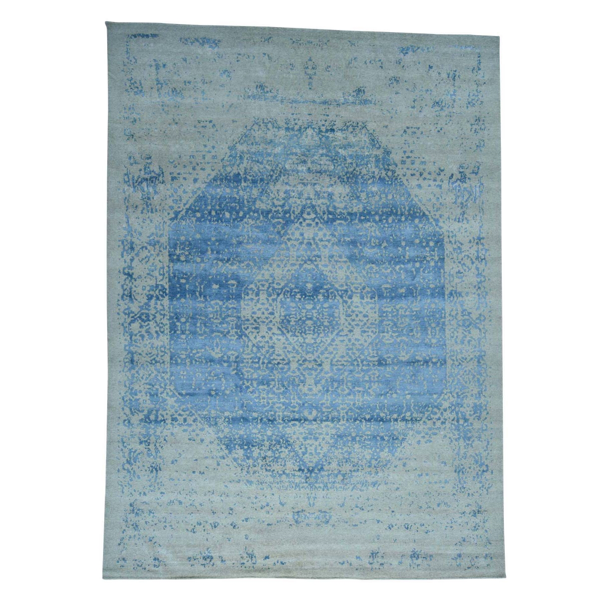 1800 Get A Rug sh35801 8 ft. 10 in. x 12 ft. Hand Knotted Wool and Silk Broken Persian Design Oriental Rug Blue