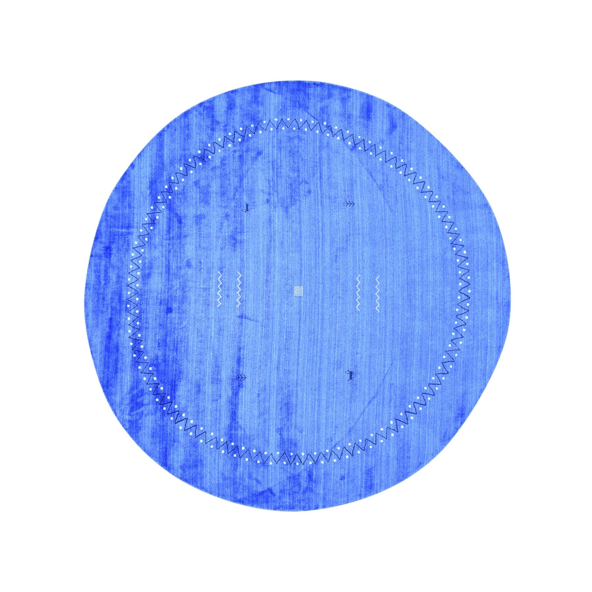 Features- This is a truly genuine one-of-a-kind hand-loomed modern art silk denim blue gabbeh oriental round rug