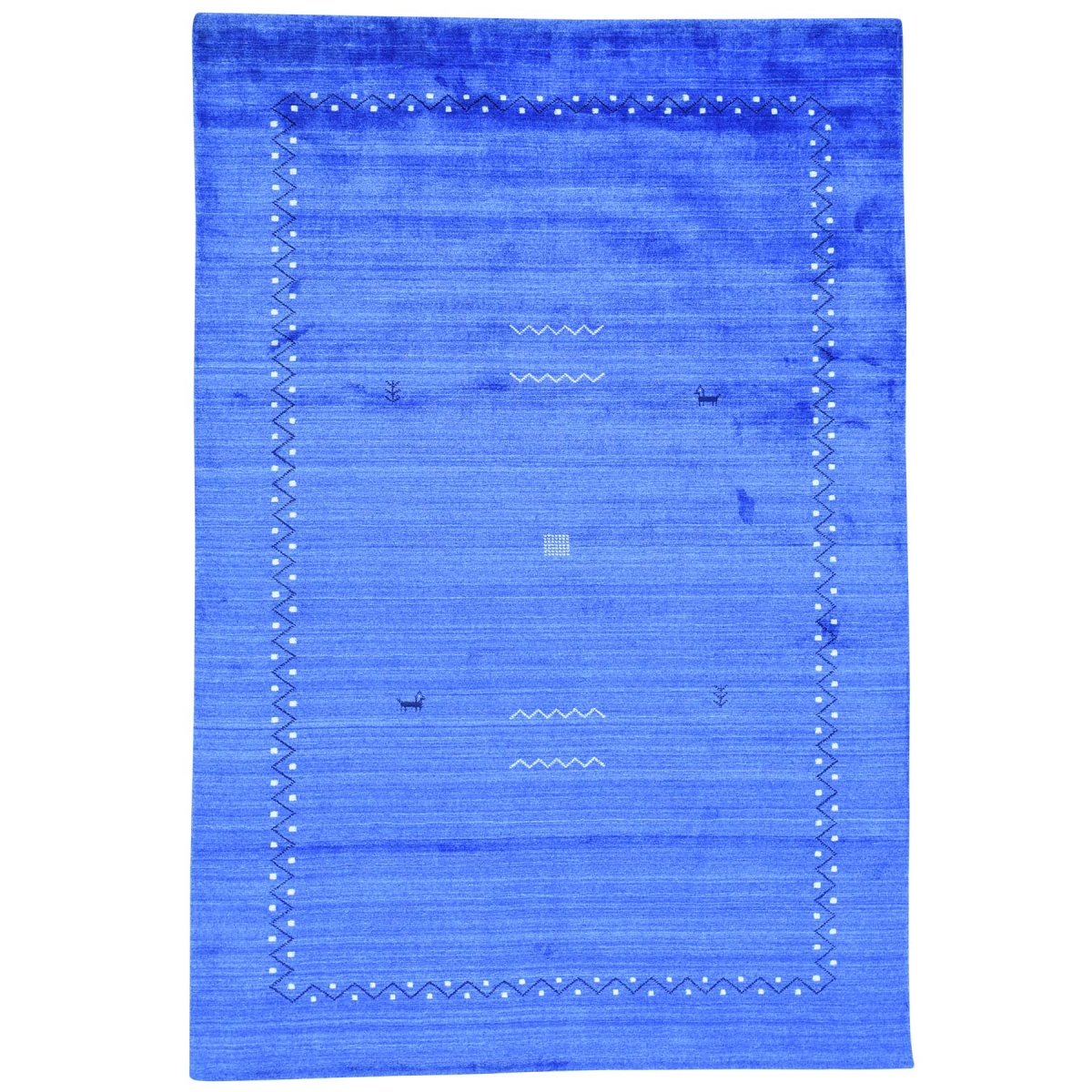 Features- This is a truly genuine one-of-a-kind denim blue gabbeh art silk hand-loomed modern oriental rug