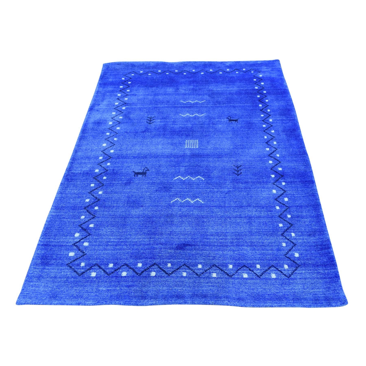 Features- This is a truly genuine one-of-a-kind hand-loomed gabbeh art silk denim blue modern oriental rug