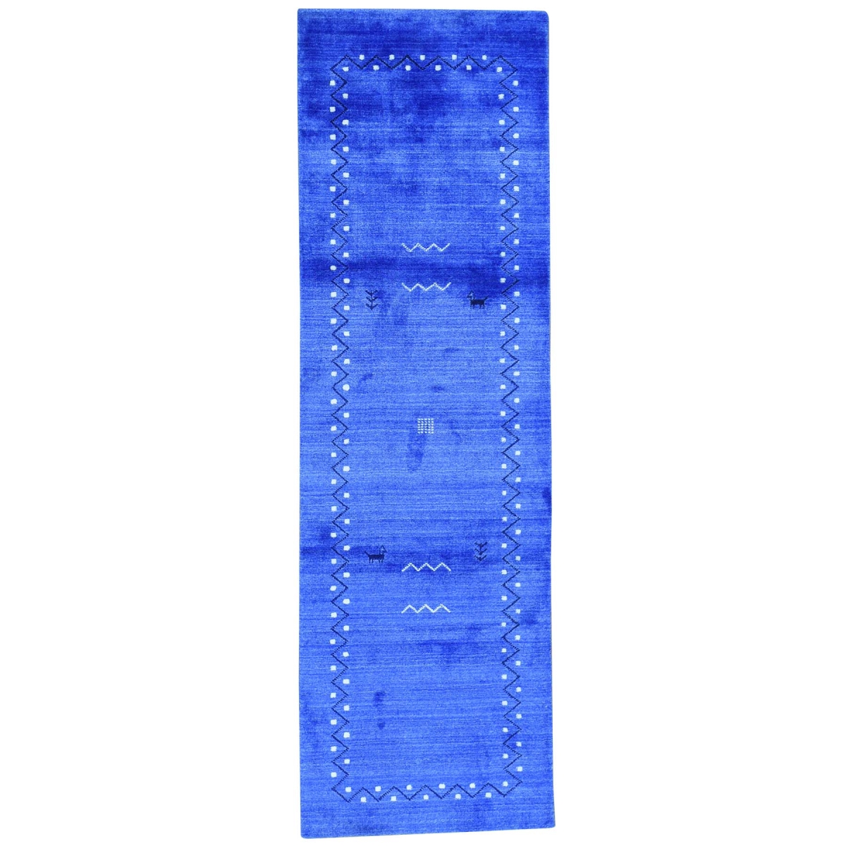 1800 Get A Rug sh35858 2 ft. 6 in. x 8 ft. 1 in. Modern Gabbeh Hand Loomed Art Silk Oriental Runner Rug Denim Blue