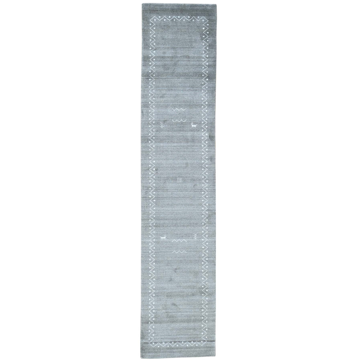Features- This is a truly genuine one-of-a-kind grey hand-loomed gabbeh modern art silk oriental runner rug
