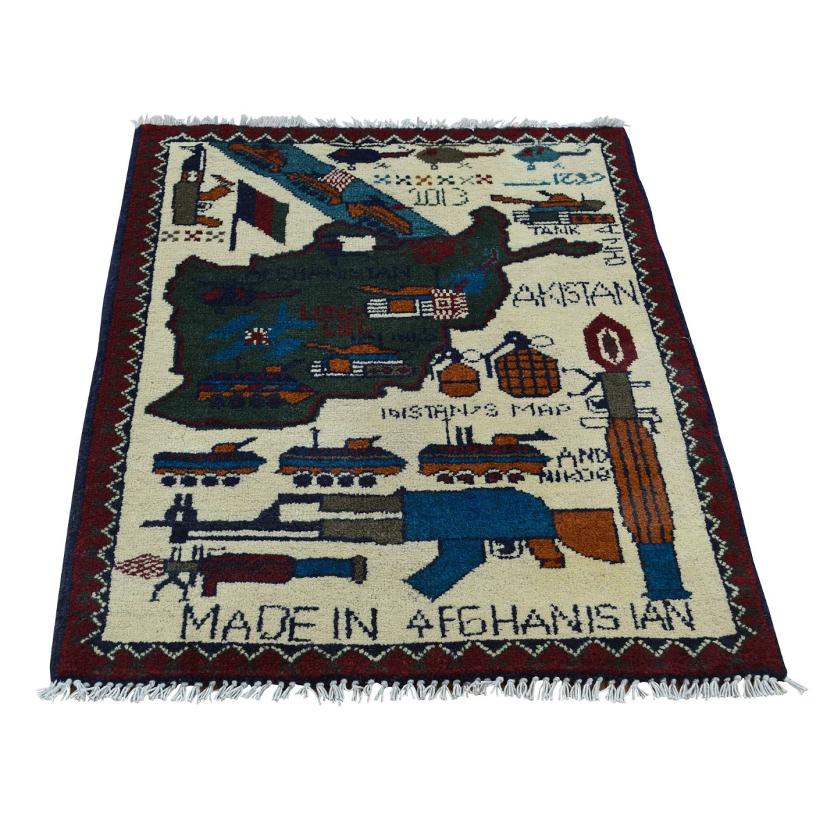 1800 Get A Rug sh35901 2 ft. x 2 ft. 7 in. Hand Knotted Afghan Baluch War Tanks Guns and Grenades Rug Ivory