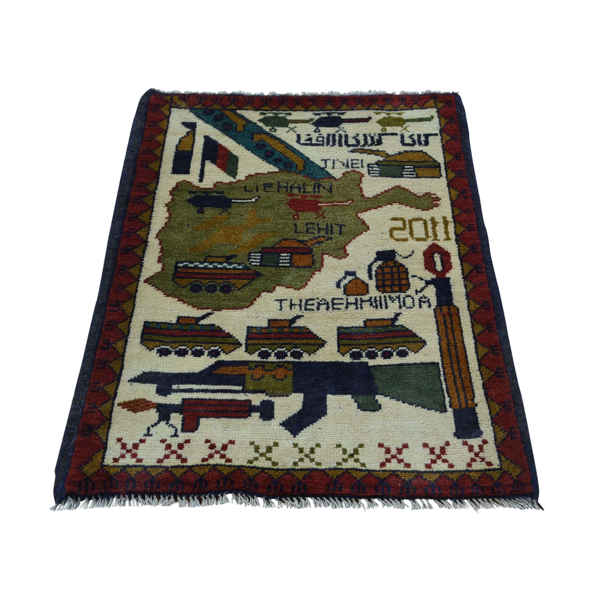 1800 Get A Rug sh35908 2 ft. 2 in. x 2 ft. 8 in. Hand Knotted Afghan Baluch War Tanks Guns and Grenades Rug Ivory