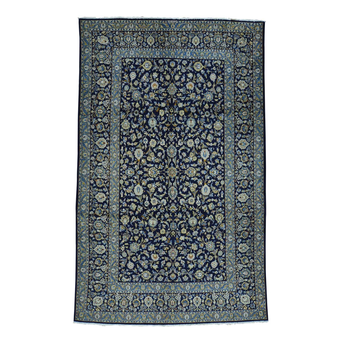 Features- This is a truly genuine one-of-a-kind persian kashan full pile navy blue hand-knotted wide runner rug