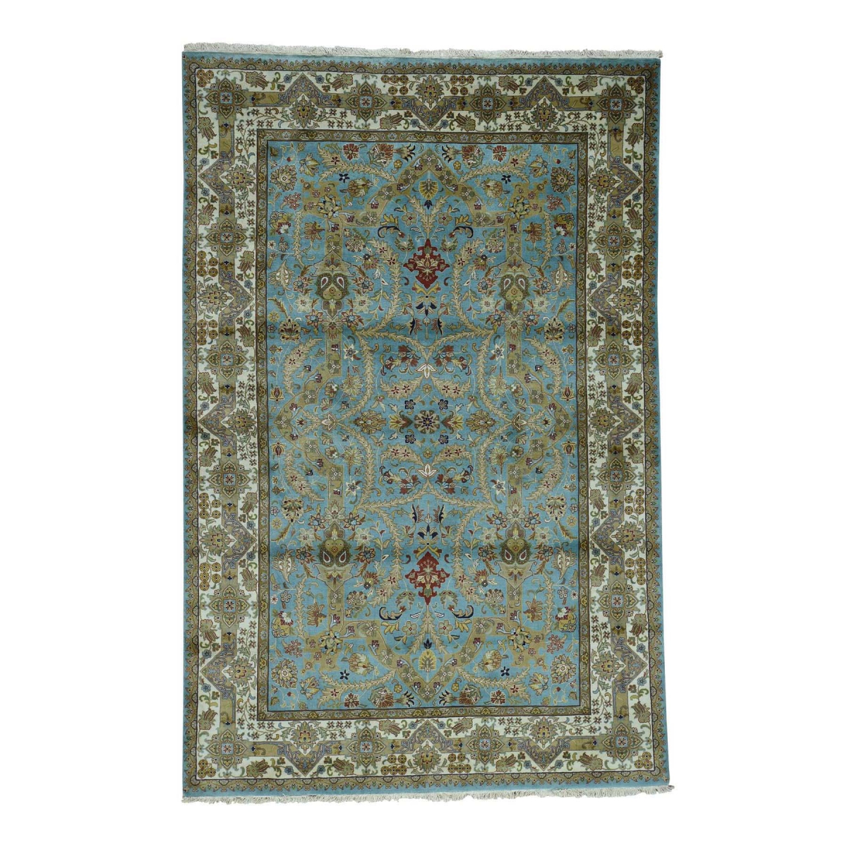1800 Get A Rug sh35968 6 ft. x 8 ft. 10 in. 300 KPSI New Zealand Wool Tabriz Design Hand Knotted Rug Blue