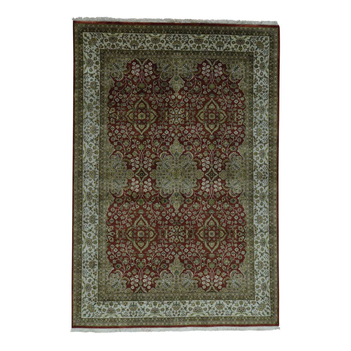 1800 Get A Rug sh35986 6 ft. x 8 ft. 10 in. 300 KPSI Hand Knotted Kashan Revival New Zealand Wool Rug Red