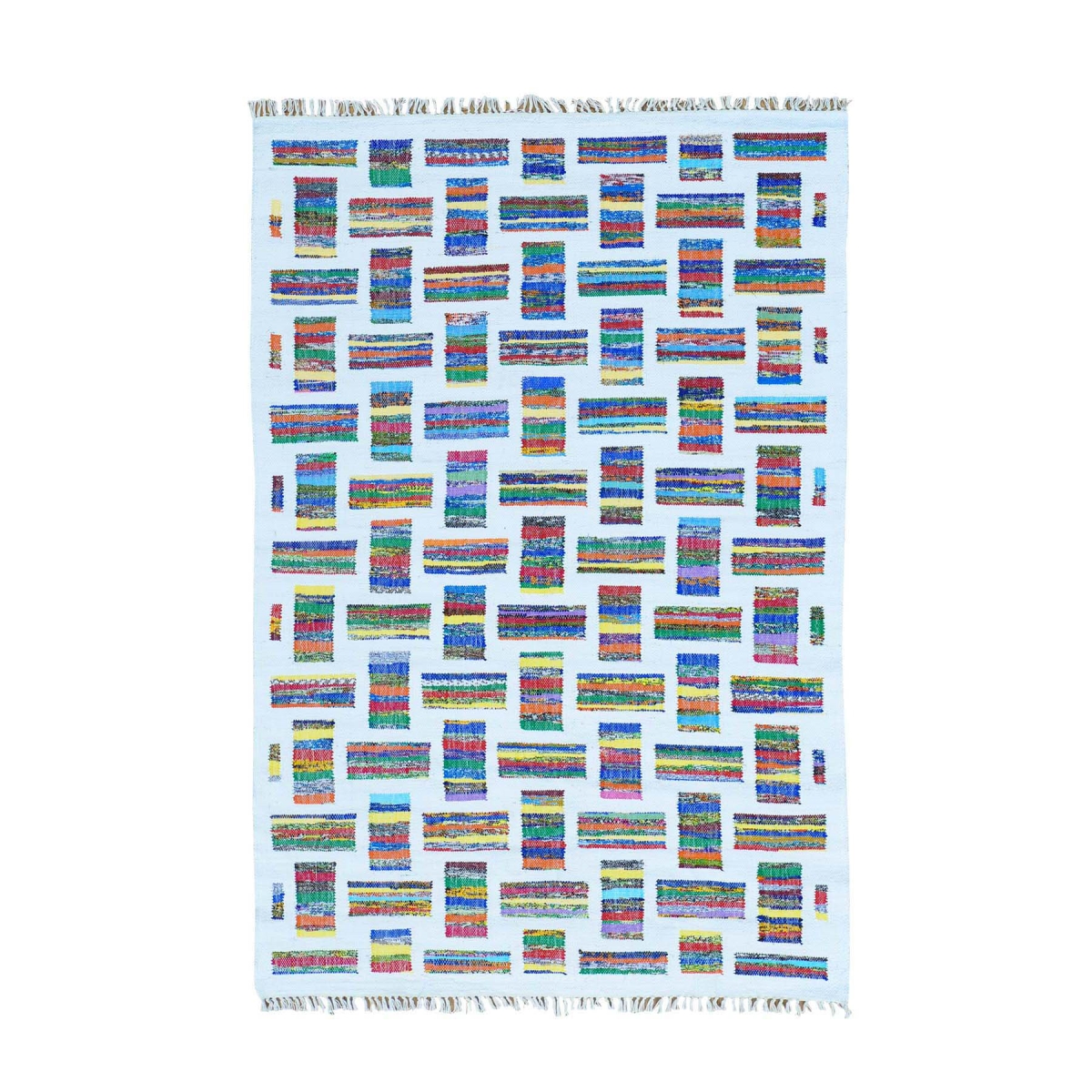 1800 Get A Rug sh36023 5 ft. x 7 ft. 6 in. Hand Woven Pure Cotton Recycled Clothes Kilim Oriental Rug Multicolor
