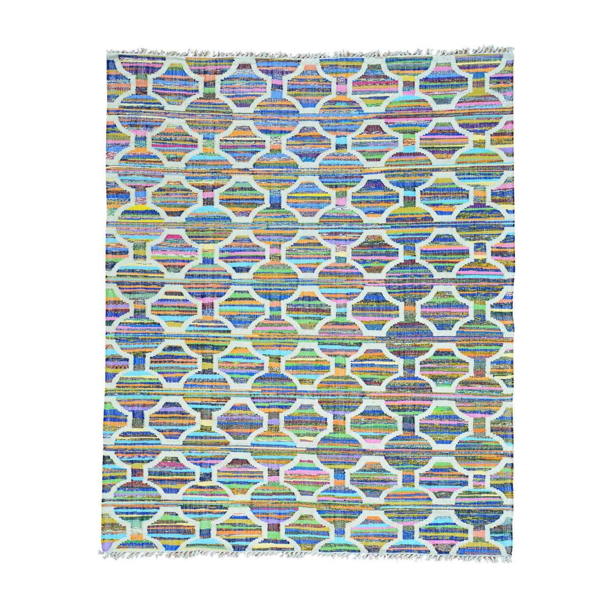 1800 Get A Rug sh36026 8 ft. x 9 ft. 10 in. Hand Woven Pure Cotton Recycled Clothes Kilim Oriental Rug Multicolor