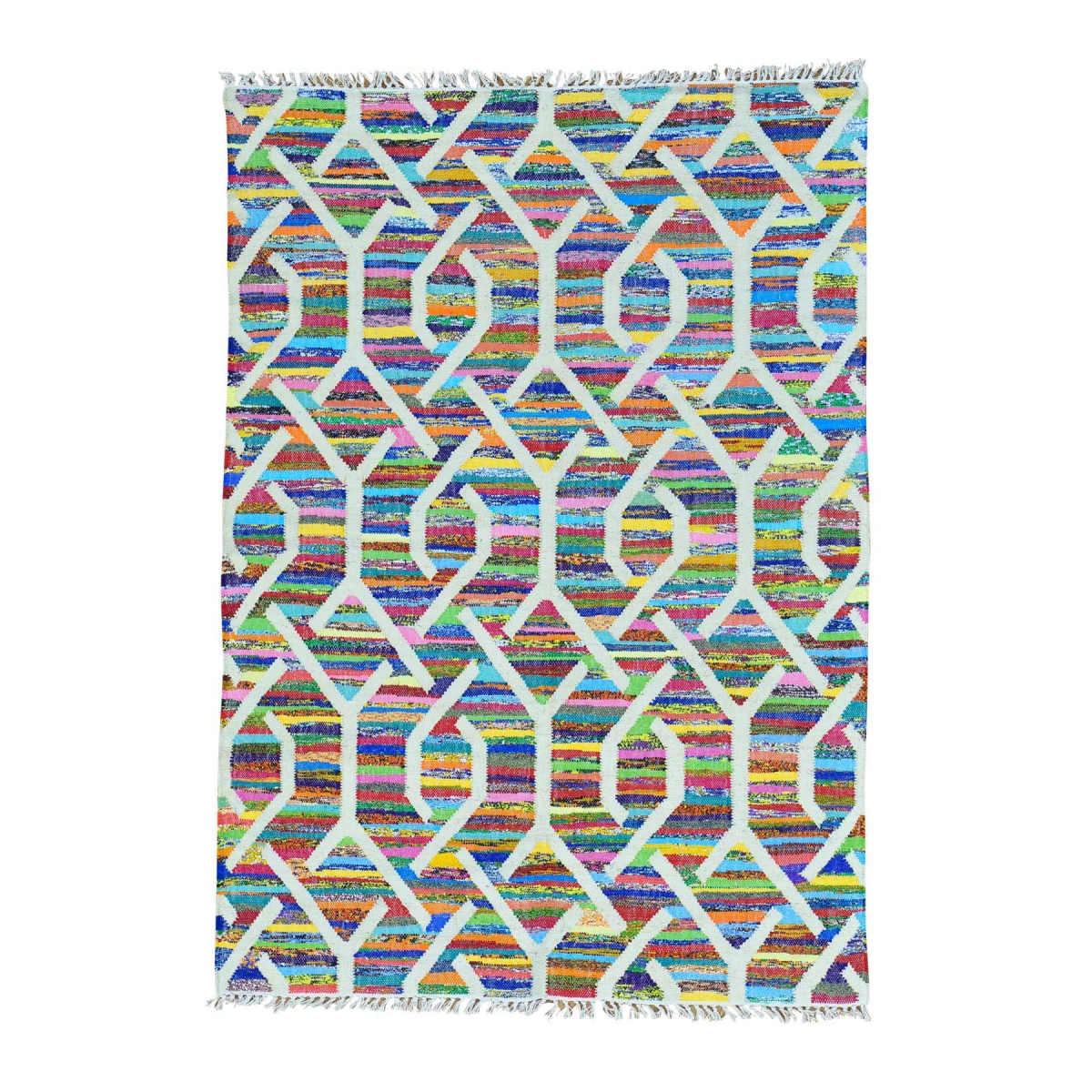 1800 Get A Rug sh36027 5 ft. x 7 ft. 2 in. Pure Cotton Hand Woven Recycled Clothes Kilim Oriental Rug Multicolor