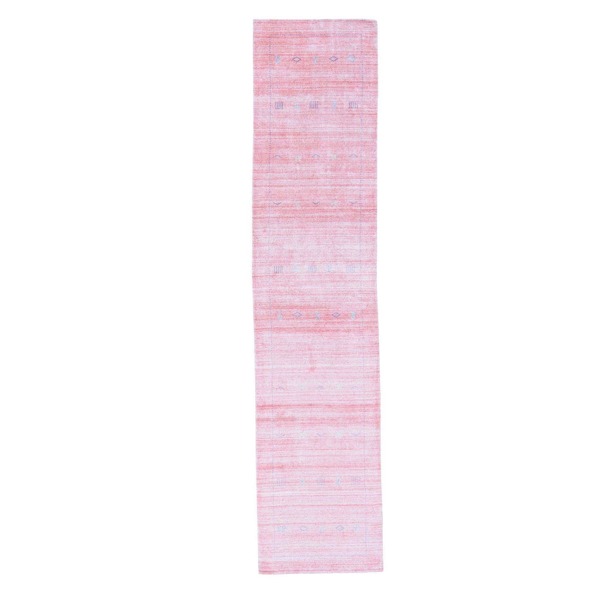Features- This is a truly genuine one-of-a-kind pink hand-loomed pure wool gabbeh oriental runner rug