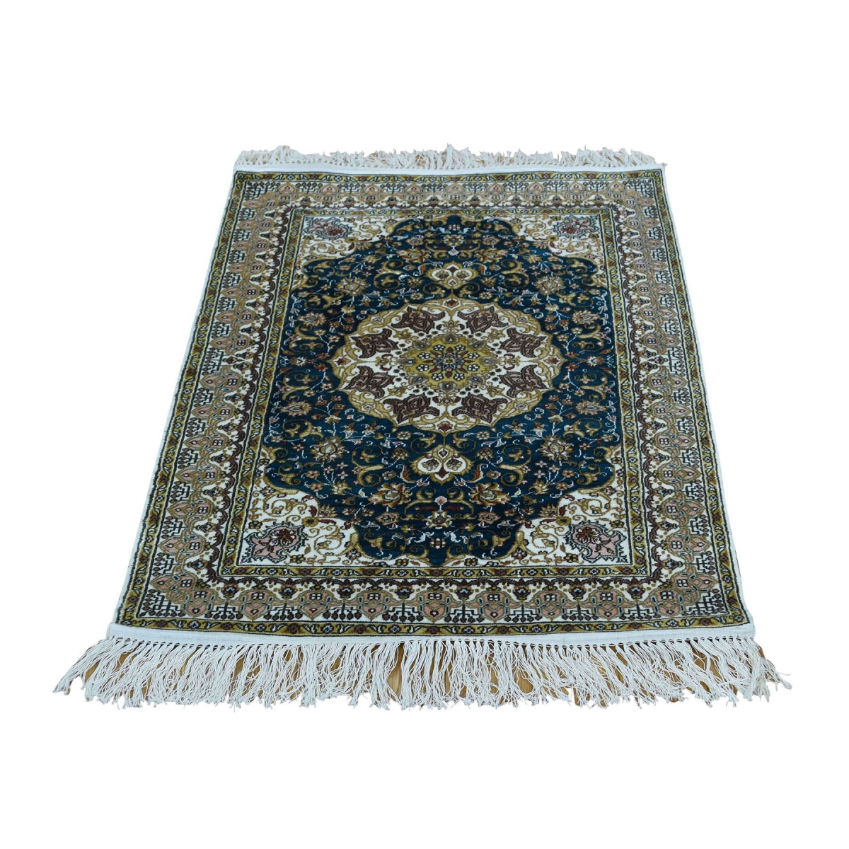 1800 Get A Rug sh36069 2 ft. 1 in. x 3 ft. 600 KPSI Pure Silk Tabriz Hand Knotted Oriental Rug Blue