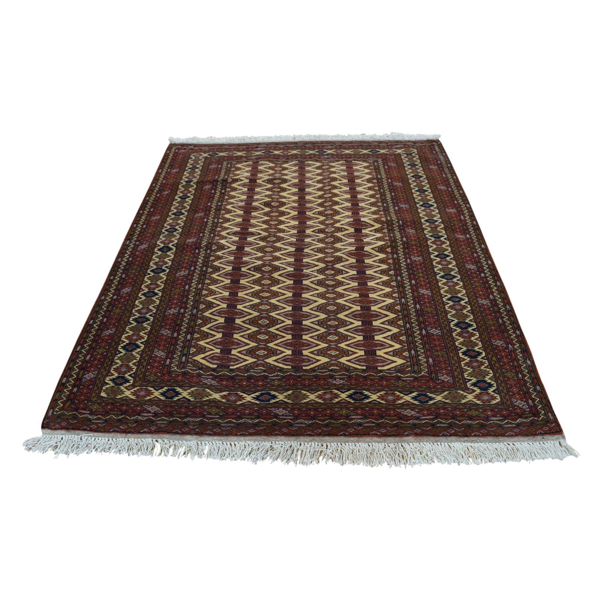 1800 Get A Rug sh36084 4 ft. 1 in. x 5 ft. 3 in. Turkoman Bokhara Hand Knotted Pure Wool Oriental Rug Beige