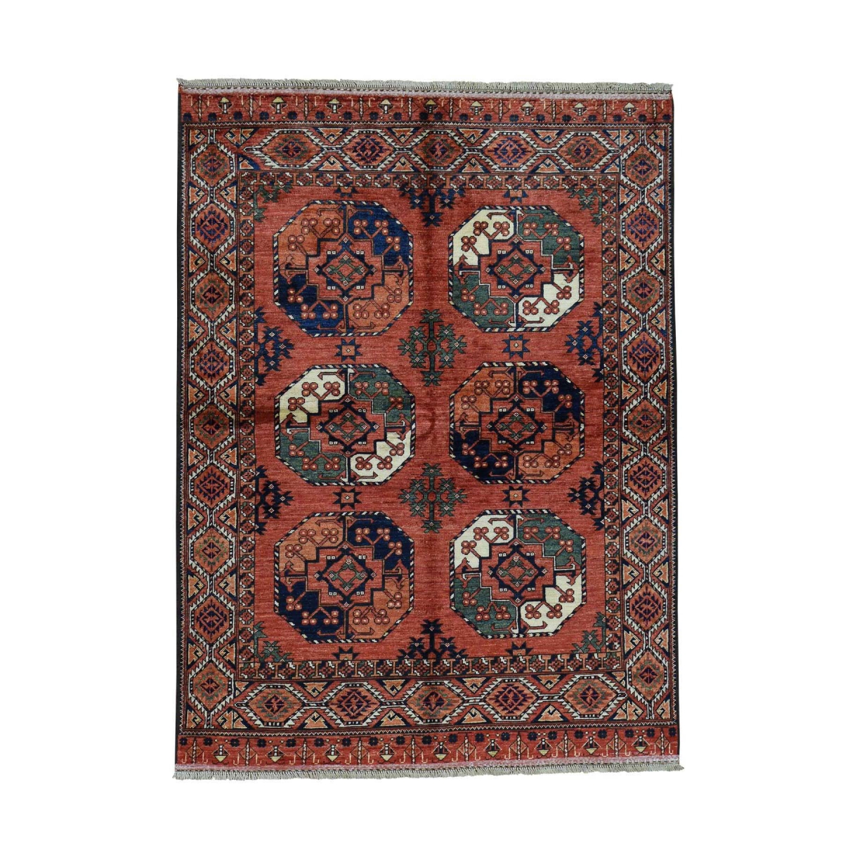 Features- This is a truly genuine one-of-a-kind turkoman afghan ersari elephant feet design pure wool rug