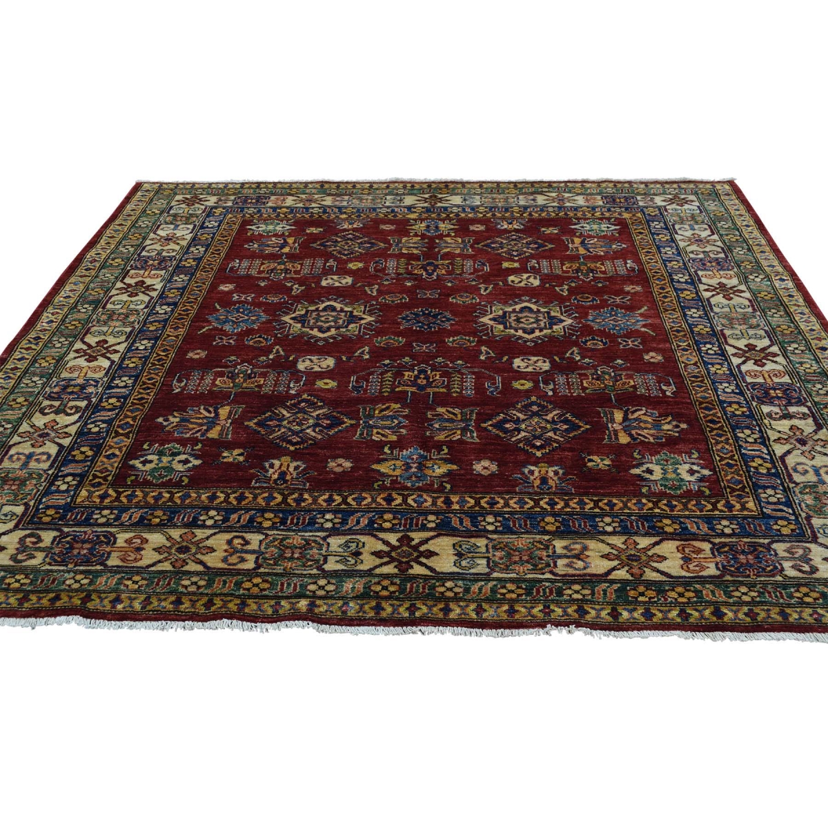 Features- This is a truly genuine one-of-a-kind hand-knotted pure wool super kazak design square oriental rug