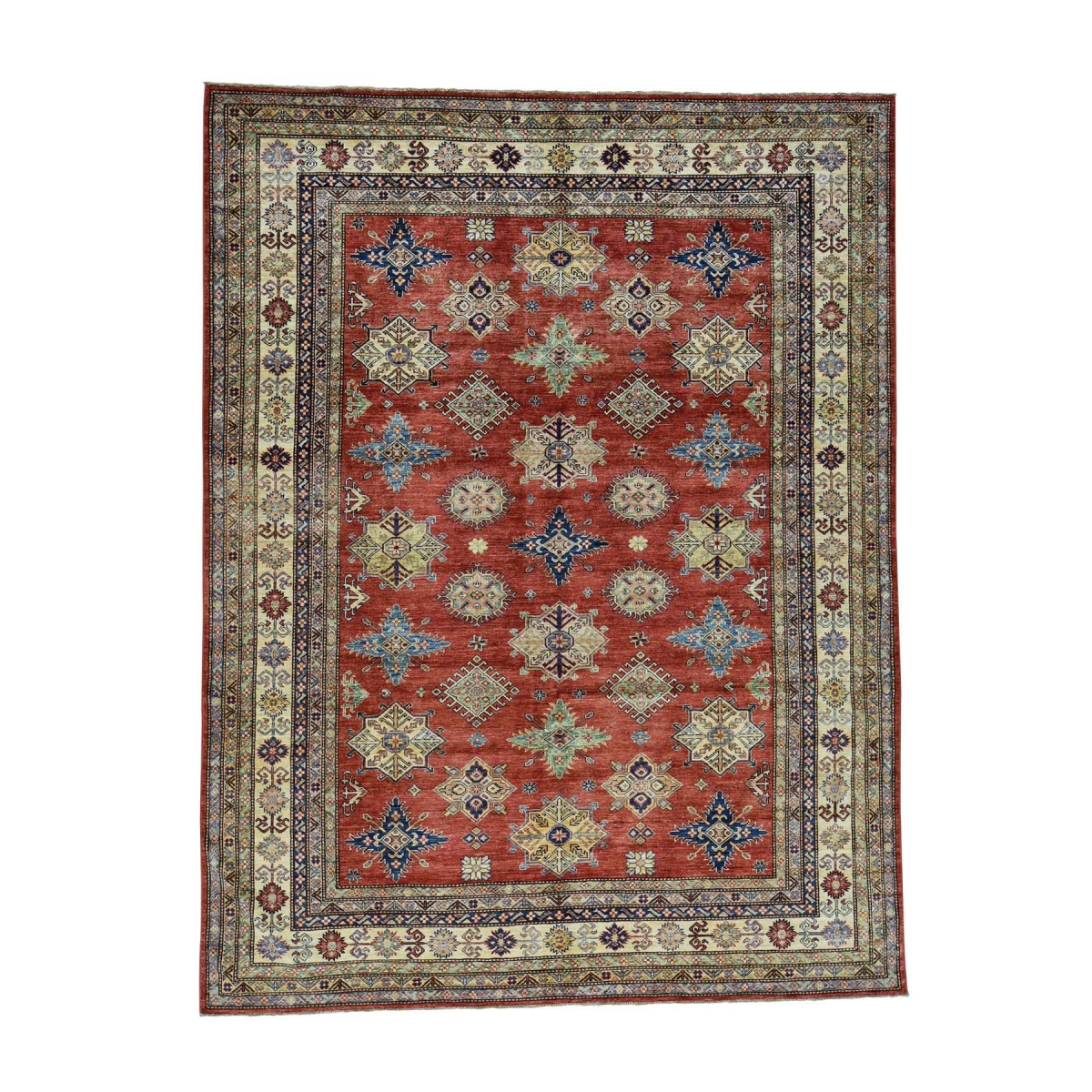 Features- This is a truly genuine one-of-a-kind hand-knotted pure wool geometric design super kazak rug