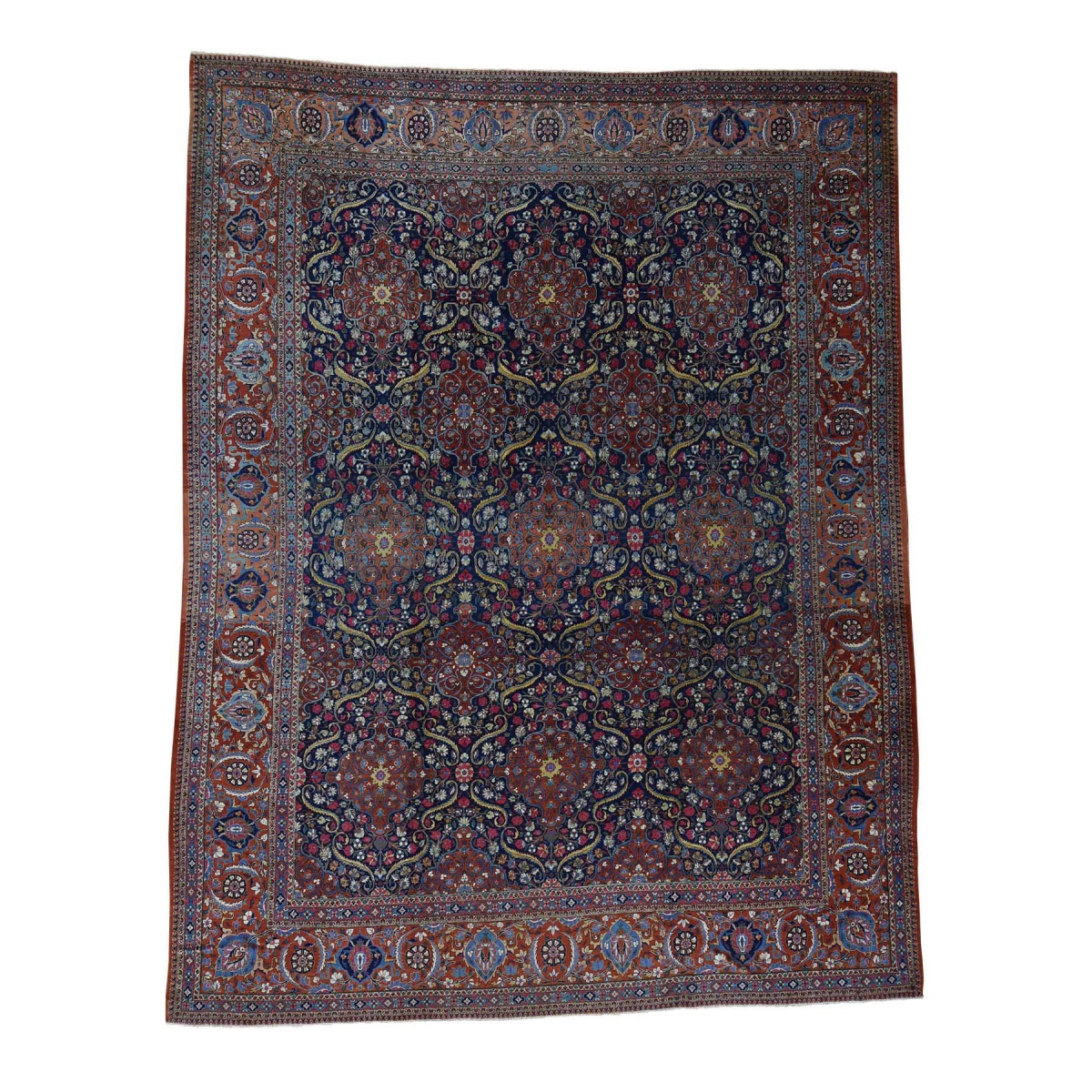 1800 Get A Rug sh36120 11 ft. 7 in. x 14 ft. 6 in. Antique Persian Kashan Full Pile Mint Condition Oriental Rug Blue