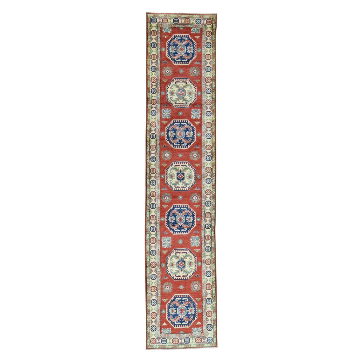 Features- This is a truly genuine one-of-a-kind kazak hand-knotted pure wool rust red oriental runner rug