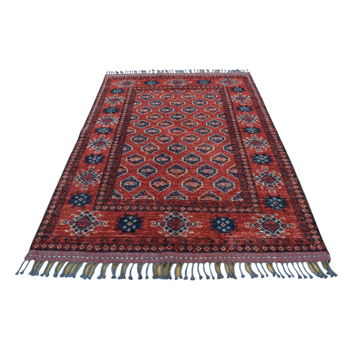 1800 Get A Rug sh36150 4 ft. 3 in. x 5 ft. 9 in. HanKnotted Afghan Ersari 100 Percent Wool Oriental Rug Red