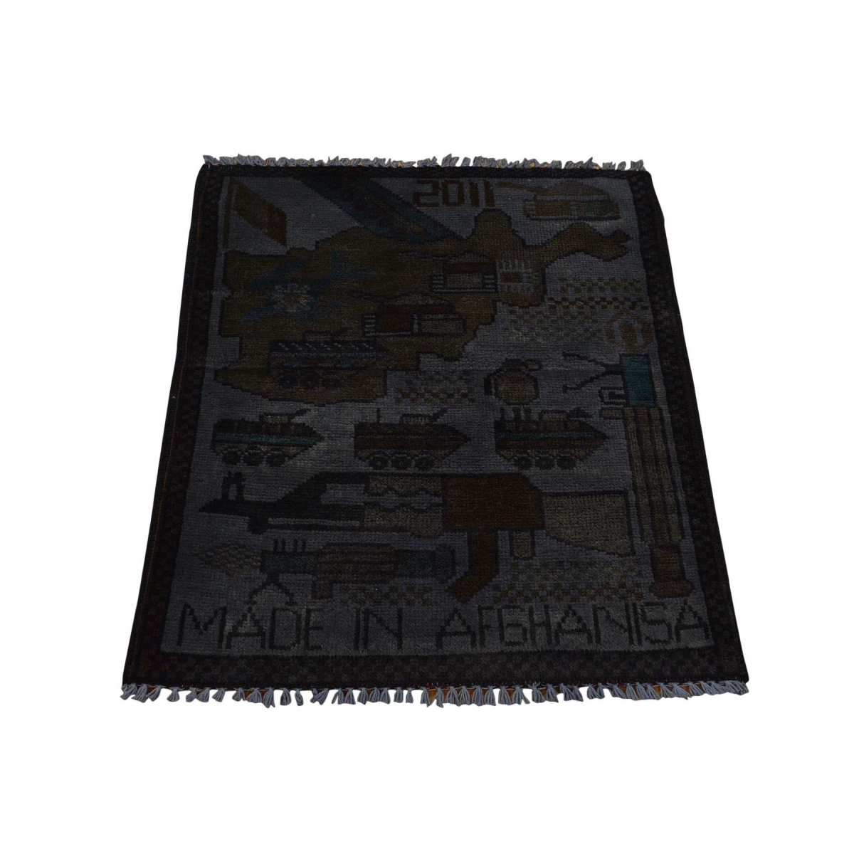 1800 Get A Rug sh36185 2 ft. x 2 ft. 6 in. Pure Wool Overdyed Hand Knotted Afghan War Tanks and Guns Rug Grey