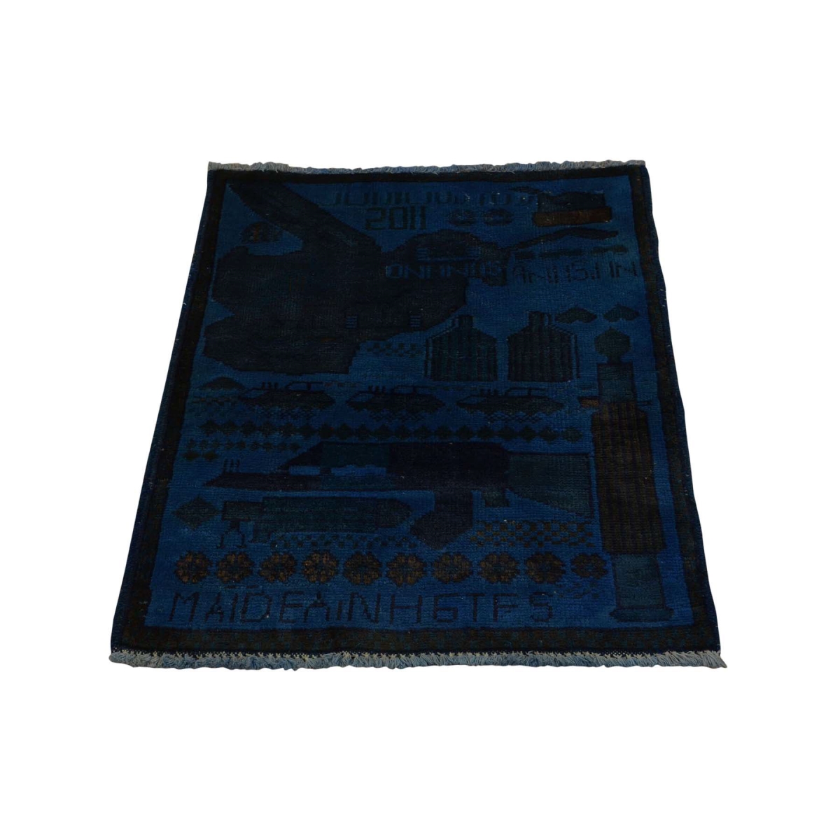 1800 Get A Rug sh36193 2 ft. x 2 ft. 5 in. Hand Knotted Overdyed Afghan War Guns and Tanks Design Rug Blue