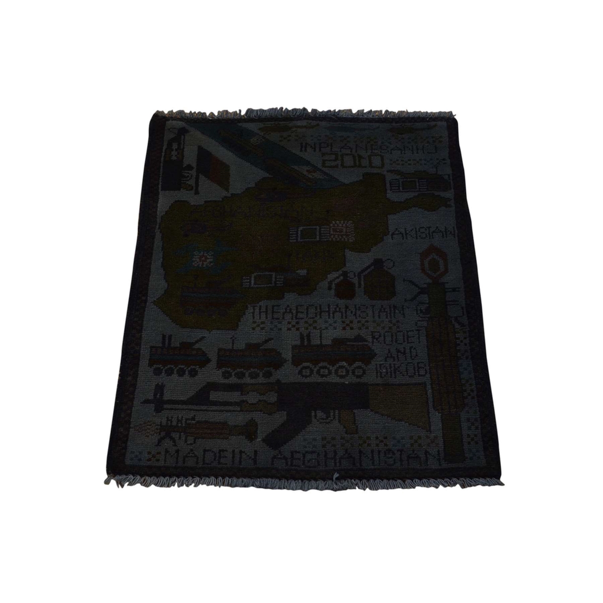 1800 Get A Rug sh36199 2 ft. x 2 ft. 6 in. Hand Knotted Afghan War Guns and Tanks Design Overdyed Rug Grey