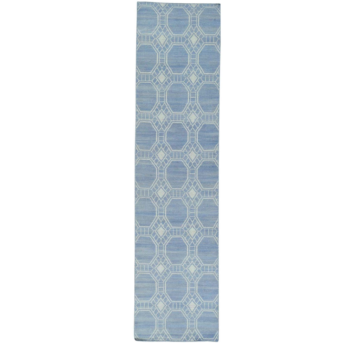1800 Get A Rug sh36217 2 ft. 6 in. x 10 ft. Reversible Hand Woven Flat Weave Durie Kilim Runner Rug Blue