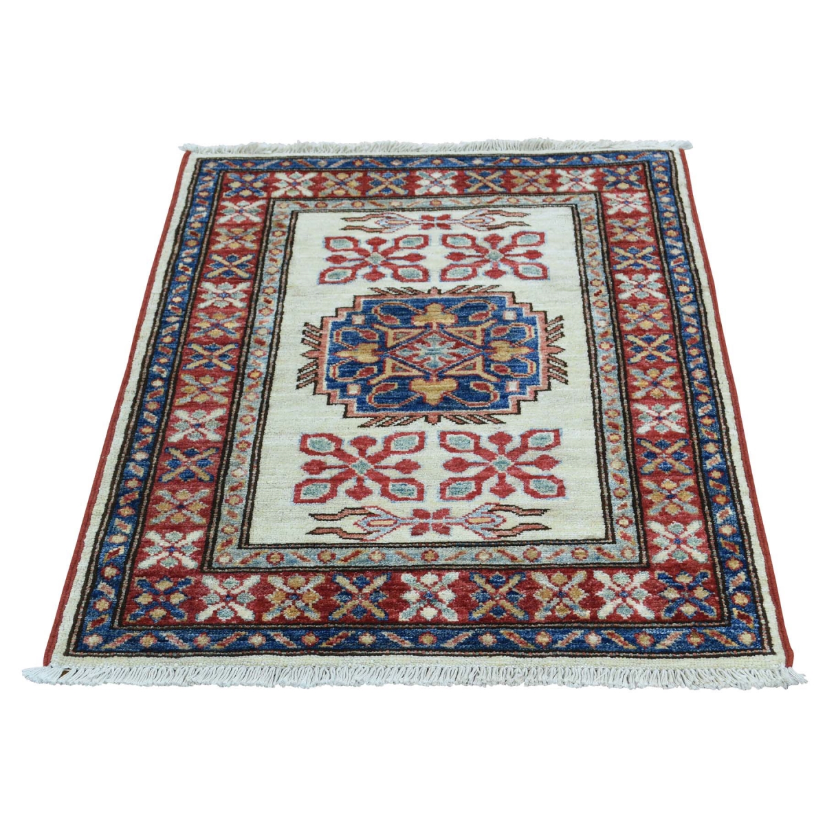 1800 Get A Rug sh36250 2 ft. 1 in. x 2 ft. 10 in. Hand Knotted Tribal and Geometric Pure Wool Super Kazak Rug Ivory