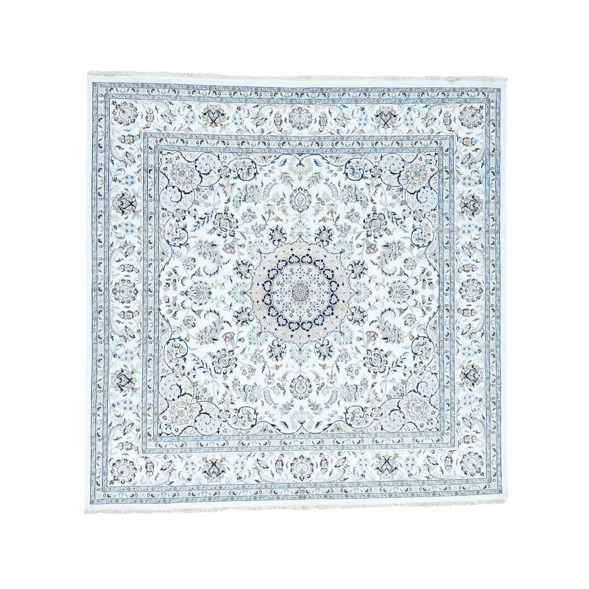 Features- This is a truly genuine one-of-a-kind 300 kpsi hand-knotted wool and silk ivory square nain rug