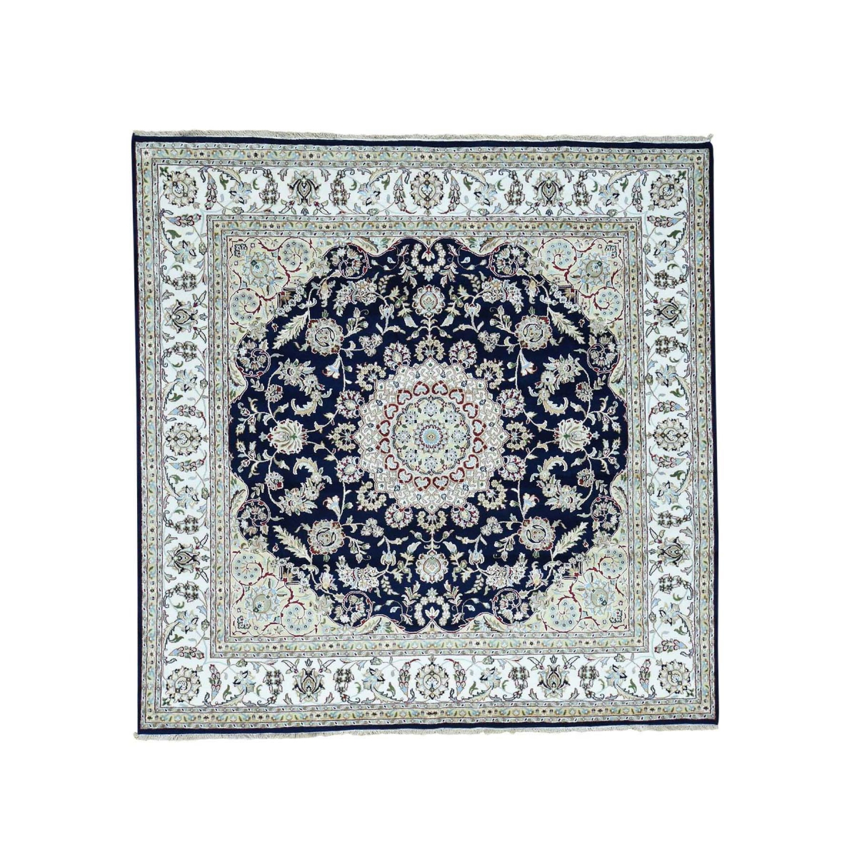 1800 Get A Rug sh36326 6 ft. x 6 ft. Hand Knotted Wool and Silk 300 KPSI Nain Square Rug Navy Blue