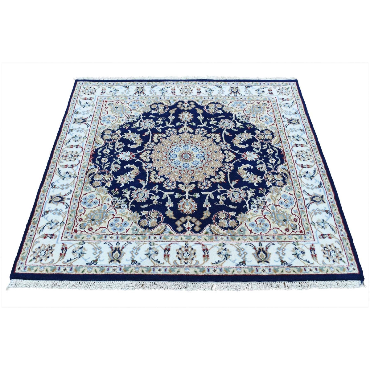 1800 Get A Rug sh36331 3 ft. 8 in. x 3 ft. 10 in. Wool and Silk Hand Knotted 300 KPSI Navy Blue Nain Square Rug Blue