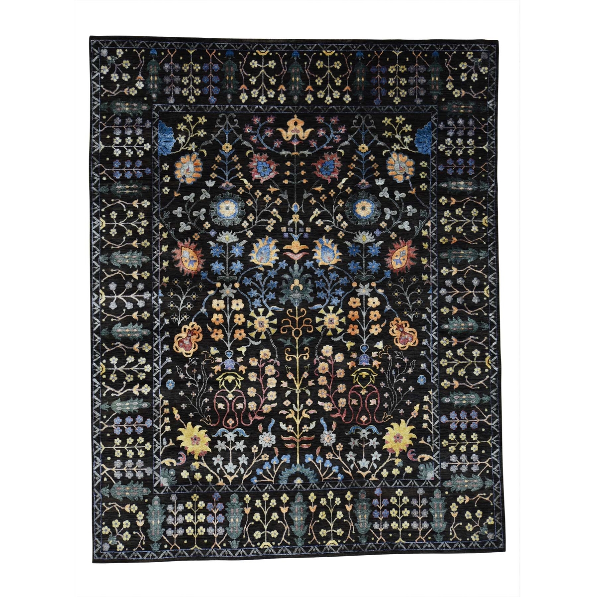 1800 Get A Rug sh36342 8 ft. 10 in. x 12 ft. Hand Knotted Wool and Silk Arts and Crafts Design Oriental Rug Black