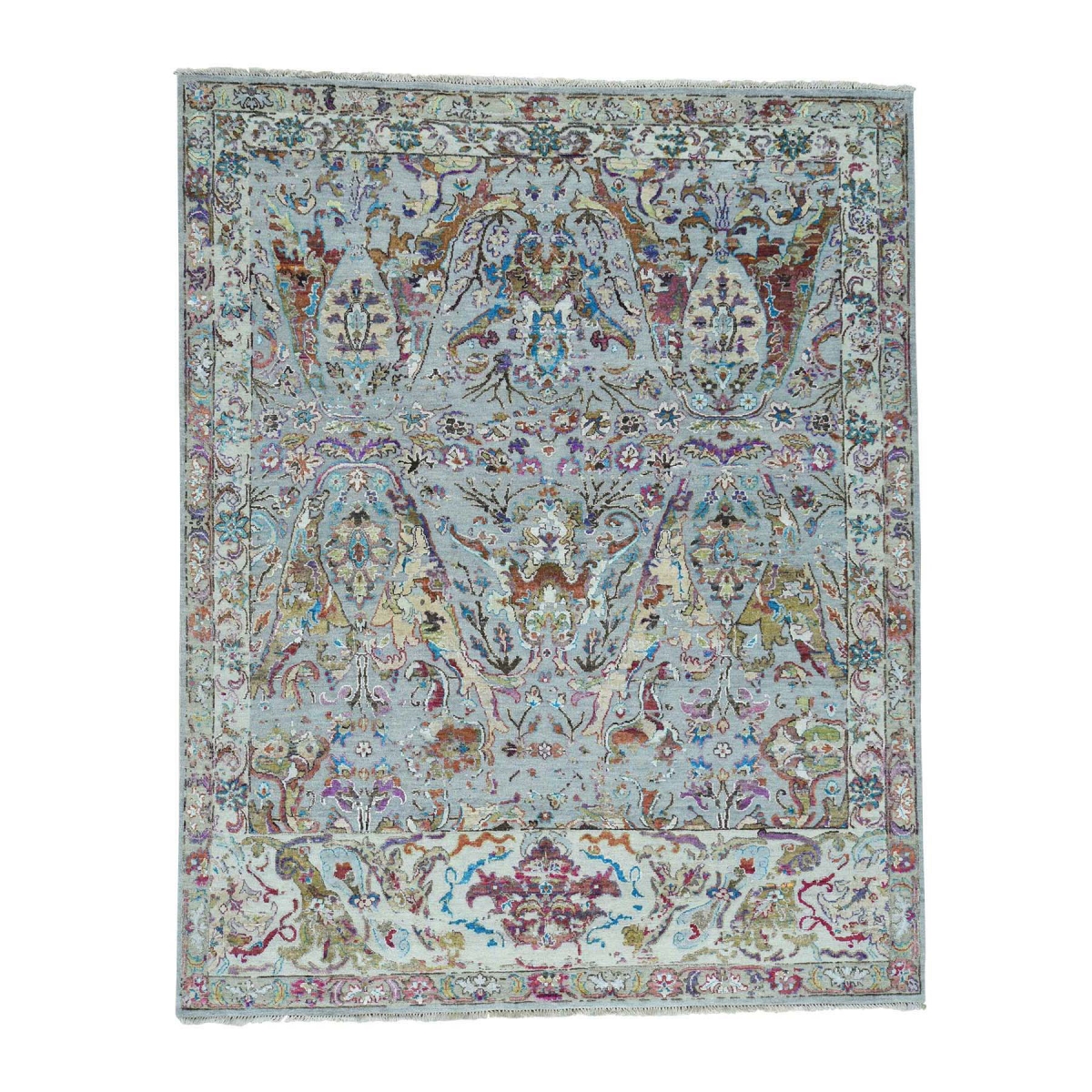 1800 Get A Rug sh36349 8 ft. x 9 ft. 10 in. Oxidized Wool and Sari Silk Ancient Mughal Design Oriental Rug Ivory