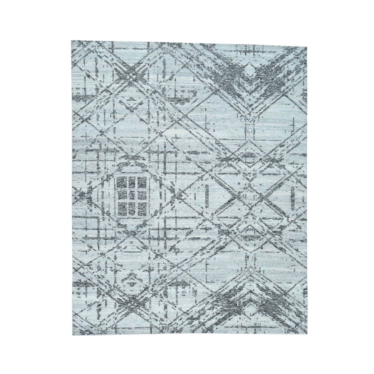 1800 Get A Rug sh36355 8 ft. x 10 ft. Undyed Natural Wool and Silk Shades Modern Nepali Cut and Loop Rug Blue