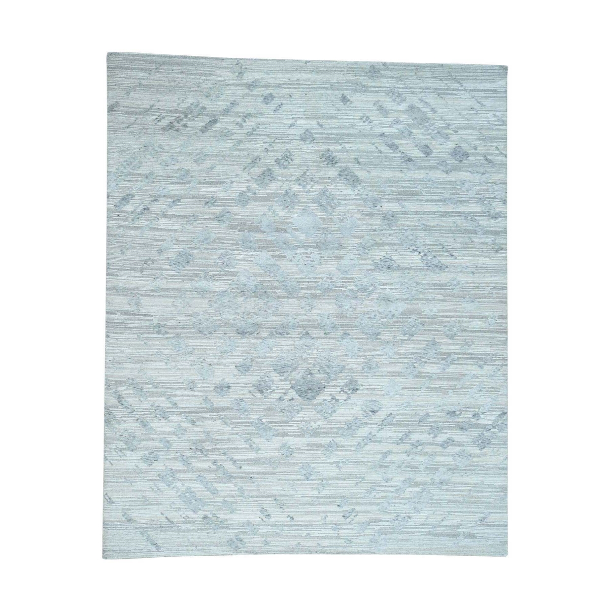 1800 Get A Rug sh36383 8 ft. 1 in. x 10 ft. Undyed Natural Wool Cut and Loop Hand Knotted Oriental Rug Blue