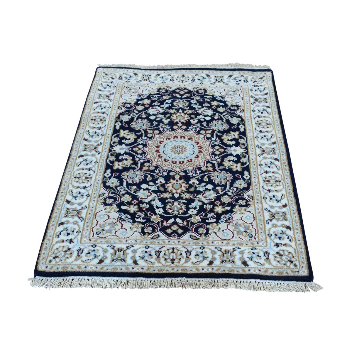 1800 Get A Rug sh36392 2 ft. 2 in. x 3 ft. 3 in. 300 KPSI Wool and Silk Hand Knotted Nain Sample Rug Navy Blue