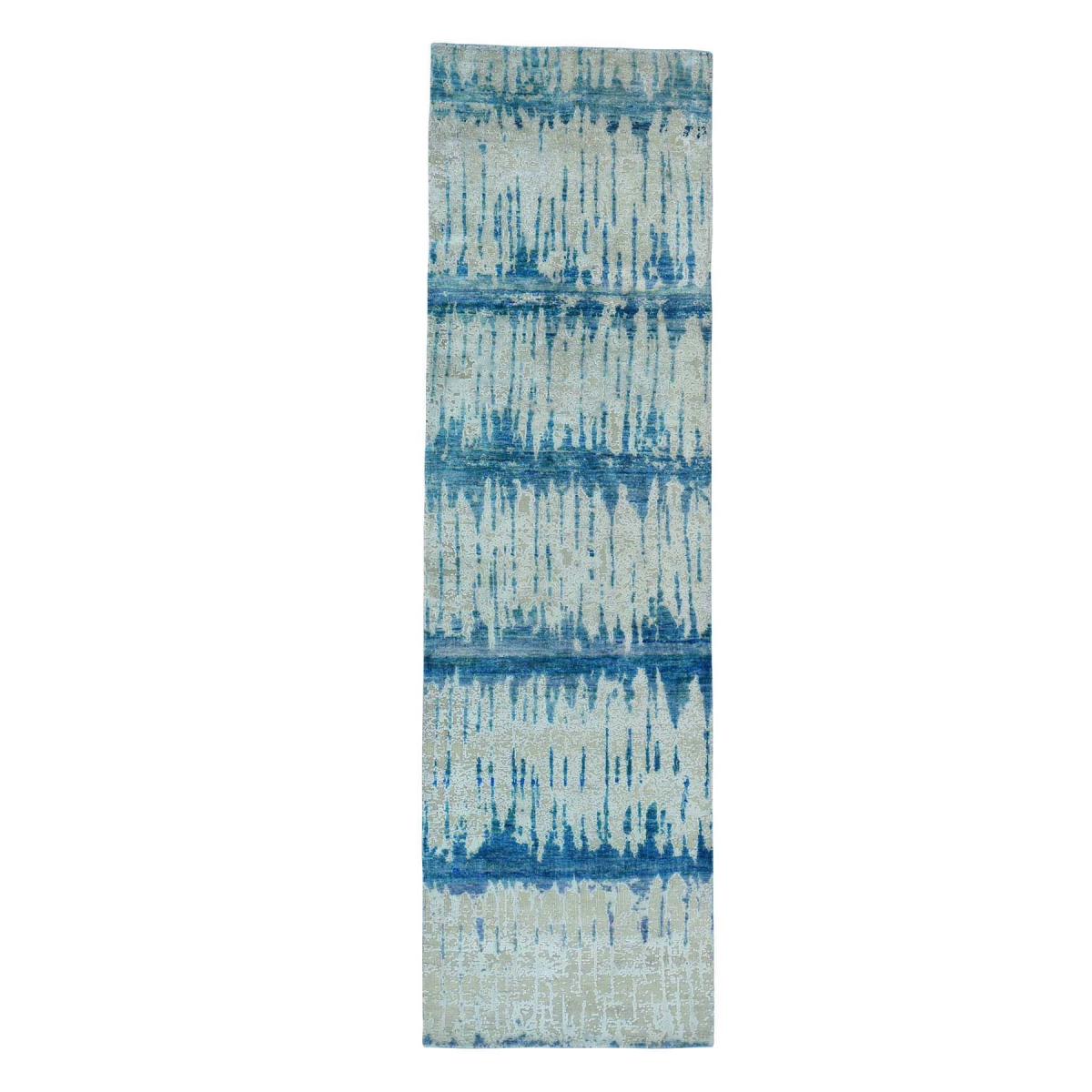 1800 Get A Rug sh36419 3 ft. x 10 ft. 1 in. Hand Knotted Sari Silk with Oxidized Wool Cardiac Design Runner Beige