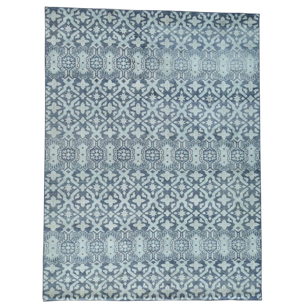 1800 Get A Rug sh36435 9 ft. x 12 ft. Navy Hand Knotted Pure Wool Geometric Oushak Design Oriental Rug Blue