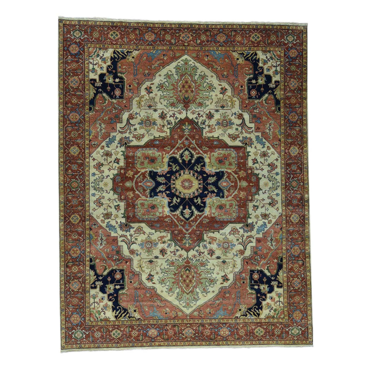 Features- This is a truly genuine one-of-a-kind antiqued heriz recreation pure wool hand-knotted oriental rug