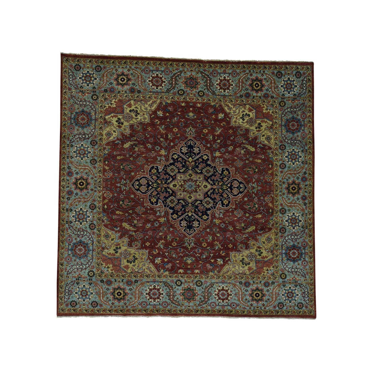 Features- This is a truly genuine one-of-a-kind pure wool antiqued heriz recreation hand-knotted square rug
