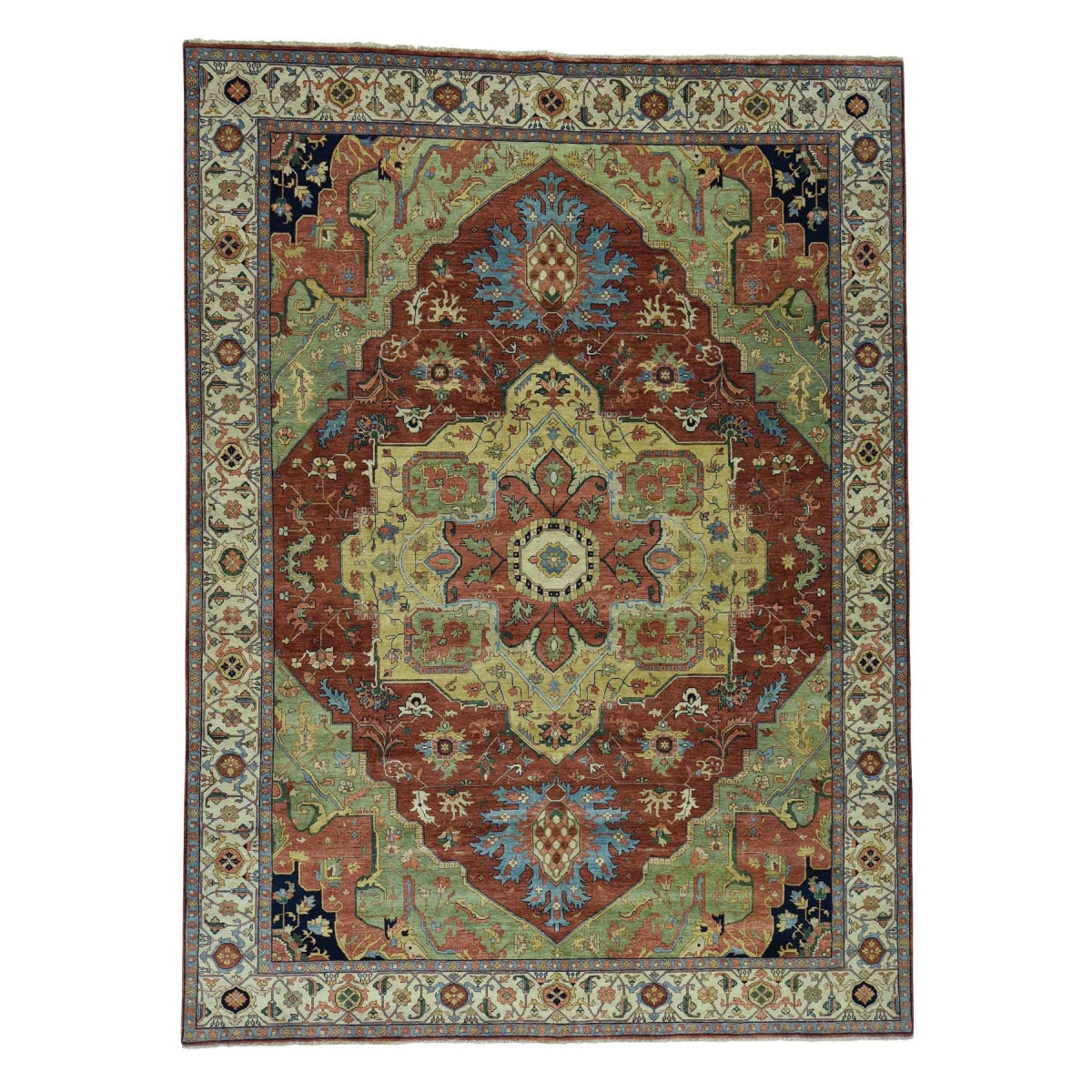 Features- This is a truly genuine one-of-a-kind hand-knotted pure wool antiqued heriz recreation oriental rug