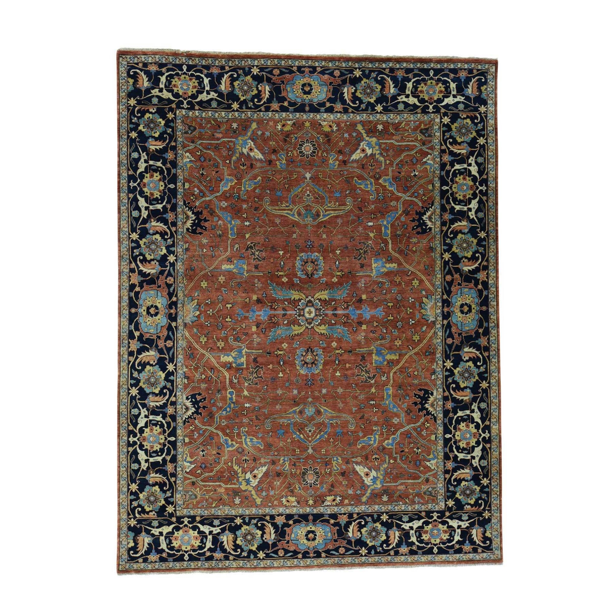 Features- This is a truly genuine one-of-a-kind antiqued heriz recreation hand-knotted pure wool oriental rug