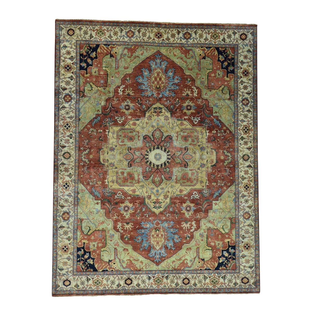 Features- This is a truly genuine one-of-a-kind antiqued heriz recreation hand-knotted pure wool oriental rug