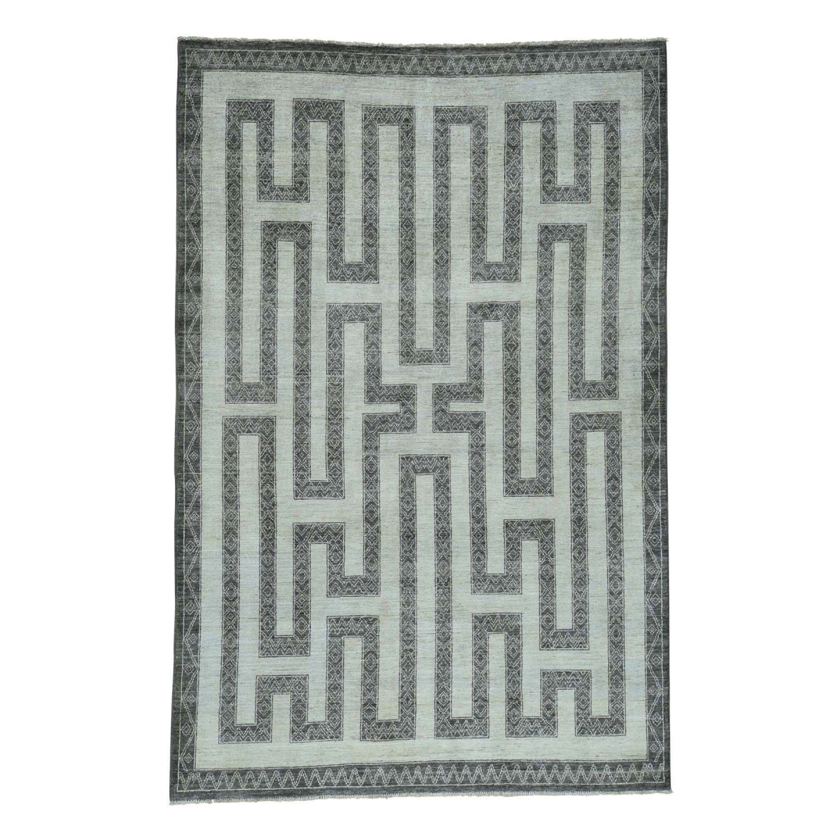 1800 Get A Rug sh36477 6 ft. x 9 ft. 1 in. Hand Knotted Pure Wool Maze Design with Berber Influence Rug Ivory