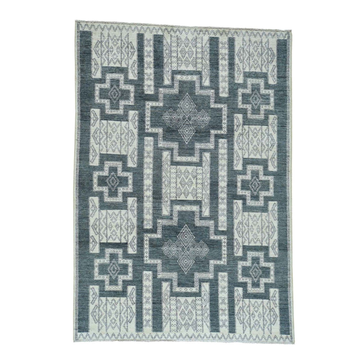 Features- This is a truly genuine one-of-a-kind peshawar with southwest motifs hand-knotted pure wool rug