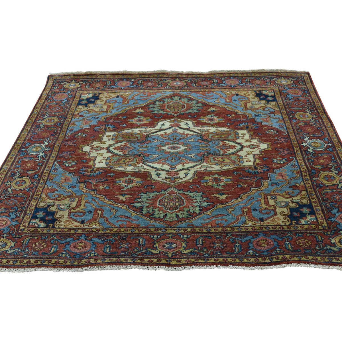 Features- This is a truly genuine one-of-a-kind hand-knotted pure wool antiqued heriz recreation square rug