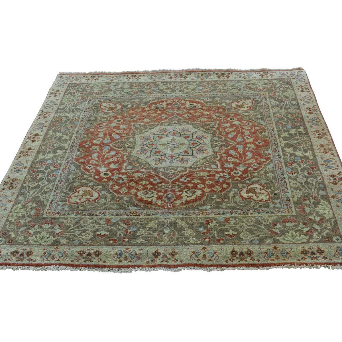 1800 Get A Rug sh36497 4 ft. x 4 ft. Hand Knotted Antiqued Haji Jalili Tabriz Recreation Oriental Rug Red