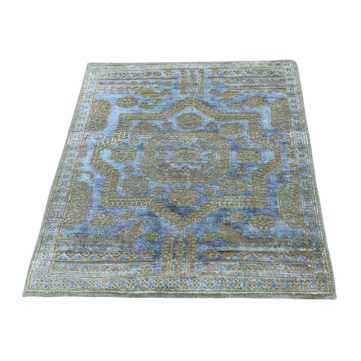 1800 Get A Rug sh36505 2 ft. 1 in. x 3 ft. Pure Silk with Oxidized Wool Mamluk Design Hand Knotted Rug Beige