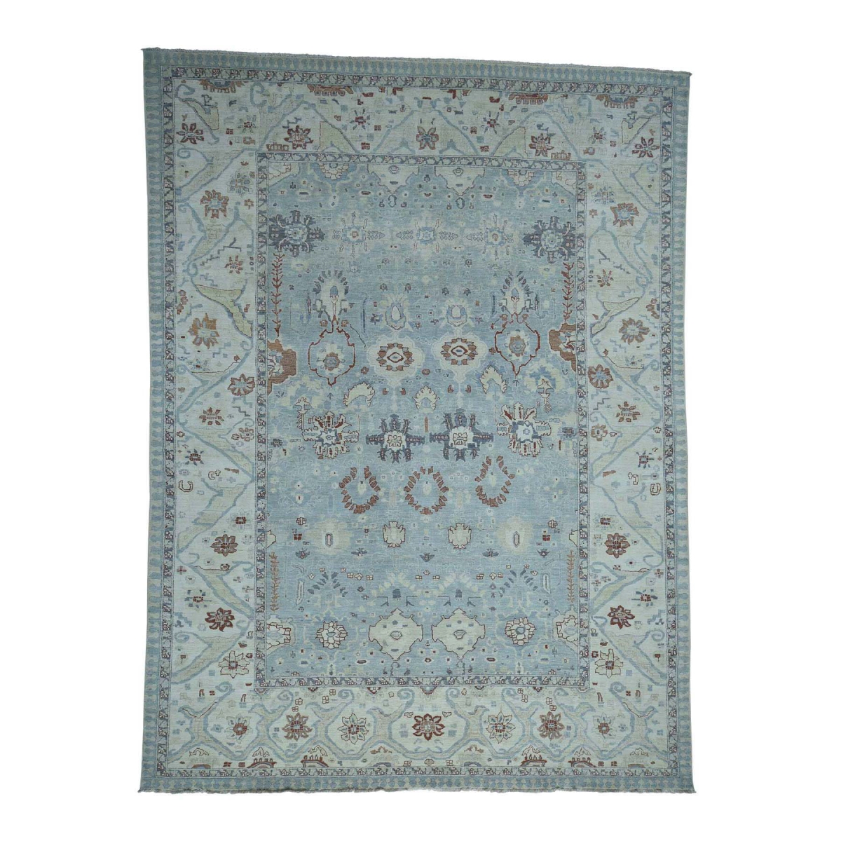 Features- This is a truly genuine one-of-a-kind sultanabad design hand-knotted pure wool peshawar white wash rug